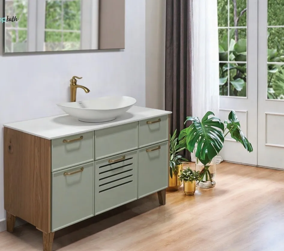 ארון עמוד פורניר חזיתות מעוצבות m/d/f מיוחד לחדרים רטובים בצבע אפוקסי לפי בחירה , רגליים + משטח עליון בוצר 4cm+\קוריאן ++ מראה מלבנית מרחפת + כיור מתנה