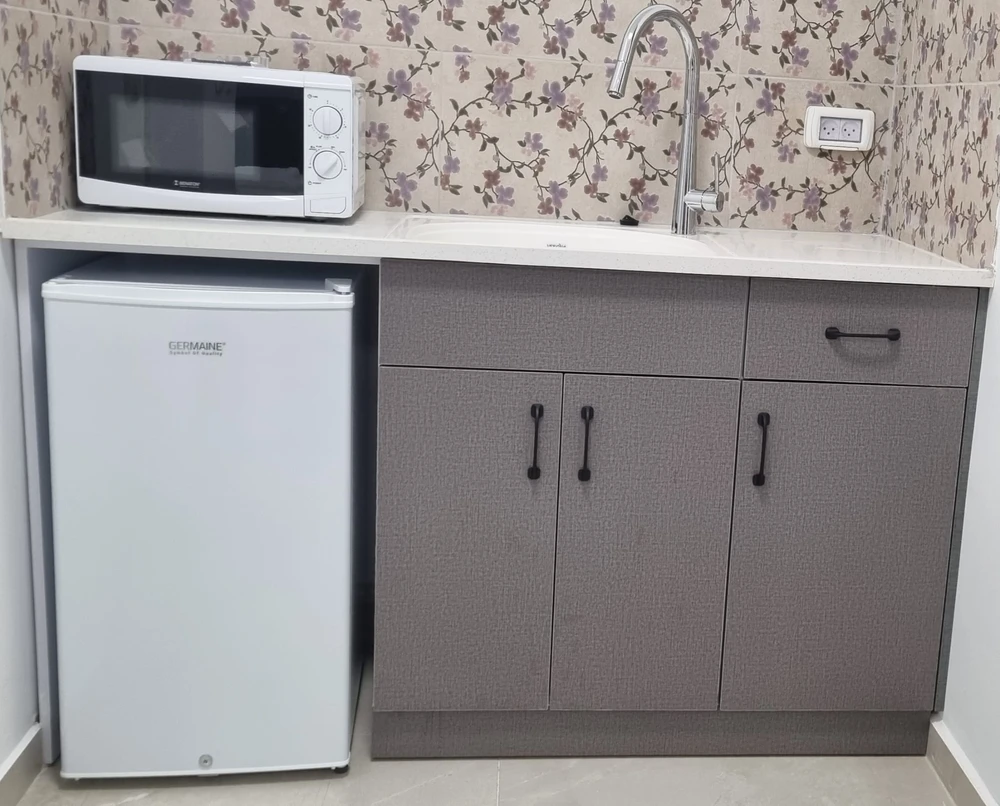 מטבחון משרדי 180 ס"מ עם שיש אקרילי דלתות פורמייקה יוטה אפור